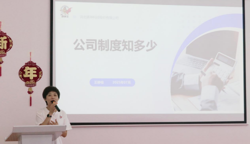 為了讓新員工清楚地知道公司的各項規(guī)定,人資部王靜俊講解了人事手續(xù)、考勤休假、薪酬福利、出差報銷,讓新員工進一步加深了對公司制度的學習,為后續(xù)新員工順利開展工作提供了保障。