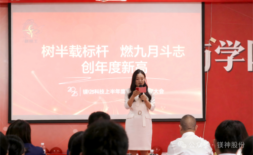 九月金秋,碩果飄香,正是總結(jié)過(guò)往、蓄力前行的美好時(shí)節(jié)。2025年9月,河北鎂神科技有限公司2025年上半年度總結(jié)暨表彰大會(huì)在鎂神商學(xué)院盛大召開。全體鎂神人齊聚一堂,以“樹半載標(biāo)桿燃九月斗志創(chuàng)年度新高”為主題,共同回顧上半年的奮斗征程,見證榜樣的榮耀綻放,擘畫下半年的發(fā)展藍(lán)圖。